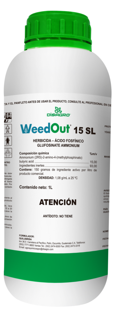 Ver detalle Weed Out® Es un herbicida de contacto no selectivo a base de Glufosinato de amonio para el control de un amplio espectro de malezas. Ficha técnica Hoja de seguridad